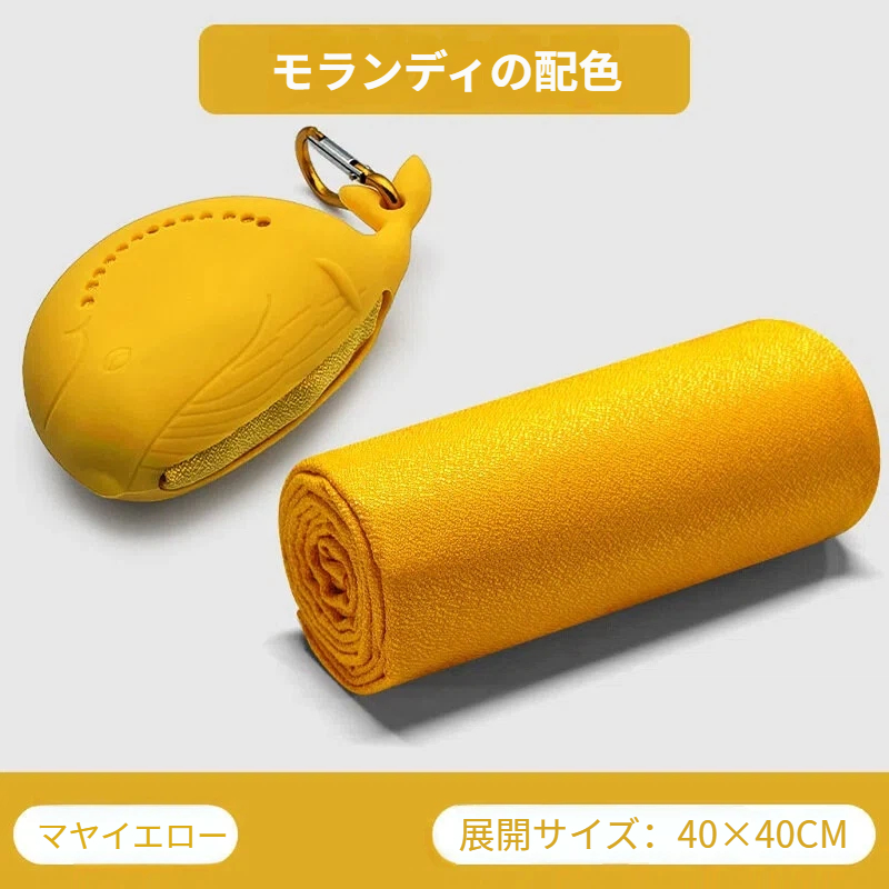 愛らしいクジラ型の速乾スポーツタオルは、柔らかくてキュートなクジラ型の収納ボックスに入っています。バッグに簡単に取り付けられるフックが内蔵されています。肌に優しく、柔らかく、吸水性、通気性に優れ、軽量です。速乾性により、ベタつかずサラッとした使い心地です。ジムでの汗拭き、アウトドアでの汗拭き、暑い通勤時のクールダウンに最適です。クジラ型のボックスに折りたたんで簡単に収納でき、コンパクトに収納できます。鮮やかなカラーバリエーションも豊富に揃っているので、実用的なスポーツアクセサリーとしてだけでなく、キュートなパーソナルアクセサリーとしてもお使いいただけます。