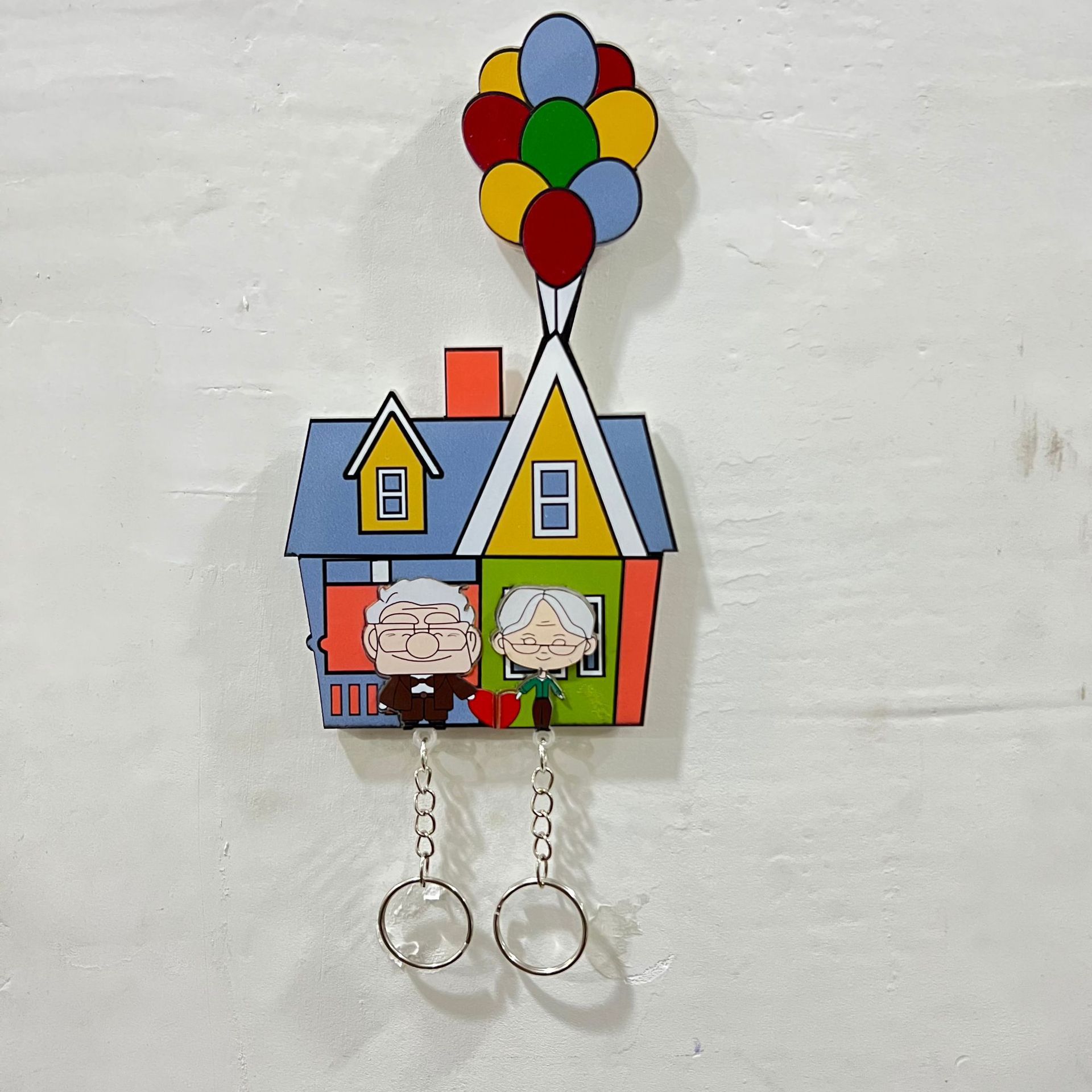 『カールじいさんの空飛ぶ家』をテーマにしたこのウォールハンギングは、映画に登場するカラフルな風船の家と、カールとエリーの心温まる姿を、生き生きとした愛らしい漫画風のデザインで完璧に再現しています。下部のベルペンダントは、振るとチリンチリンと柔らかな音を奏でます。車の窓や部屋の壁など、様々な場所に掛けられるこのウォールハンギングは、キュートなデザインで空間を彩るだけでなく、映画の温かく心地よい雰囲気を思い起こさせてくれます。『カールじいさんの空飛ぶ家』ファンにとって、コレクションしたり、ちょっとしたインテリアとして使ったりするのに最適なアイテムです。