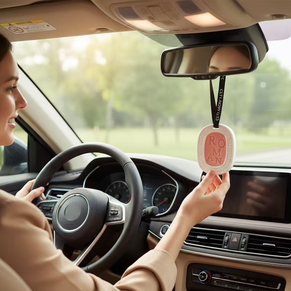 このアロマディフューザーは、美しく雰囲気のあるディフューザーです。洗練された文字が入ったシンプルな楕円形のデザインと、黒いブランドロゴの吊り下げコードが、様々な吊り下げシーンにマッチします。エッセンシャルオイルの小瓶が付属しており、数滴垂らすと爽やかな香り(写真のような繊細なフローラルの香り)が広がります。香りを閉じ込めるだけでなく、心地よい空間を演出します。クローゼットの衣類の消臭、車内の香り付け、友人へのちょっとした贈り物など、実用性と高級感を兼ね備えたこのディフューザーは、生活に心地よい空間を演出する頼もしいパートナーとなるでしょう。