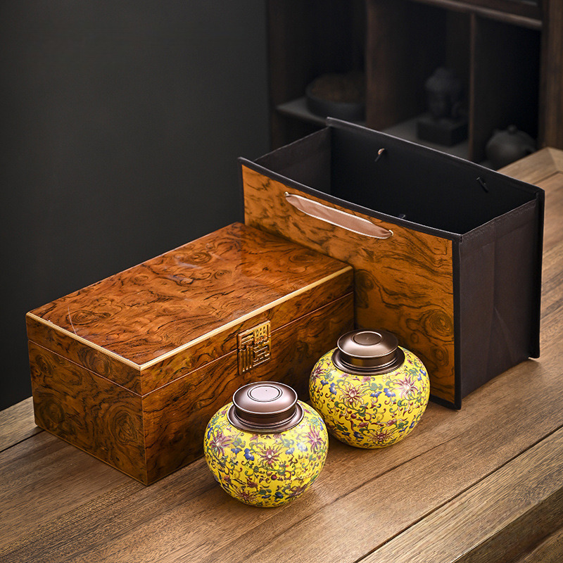 エナメル塗装の中国風イエローダブルジャー+ギフトボックス