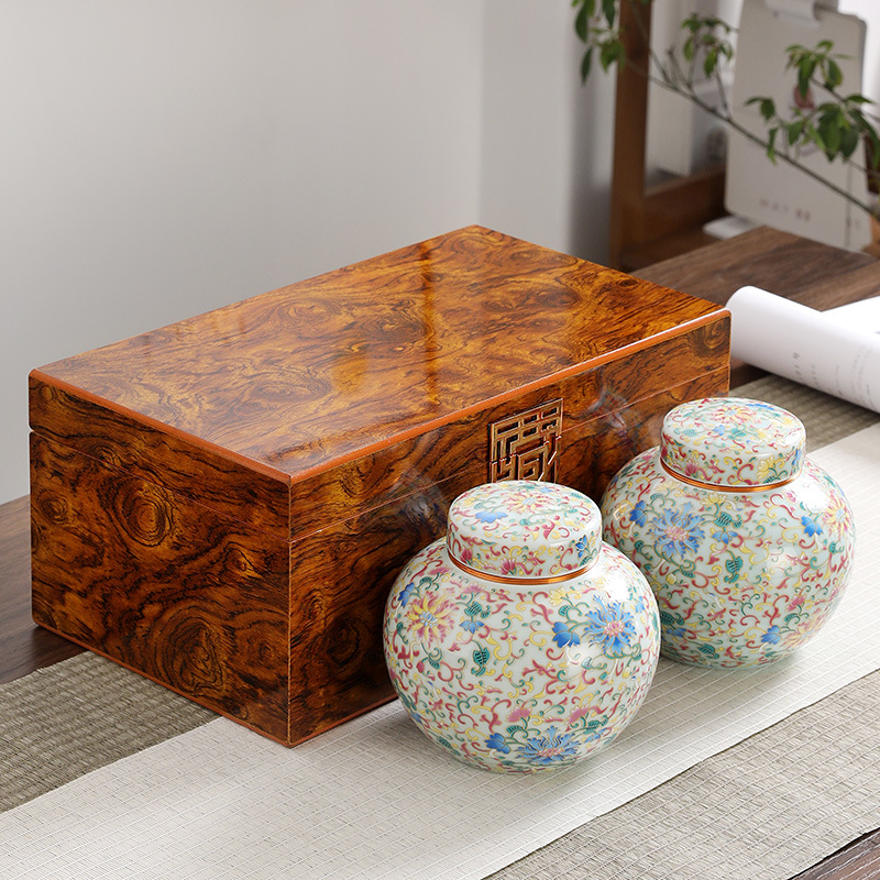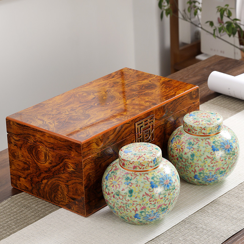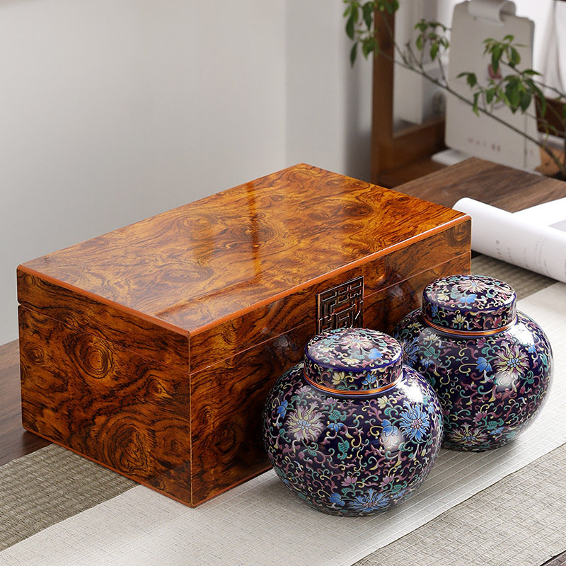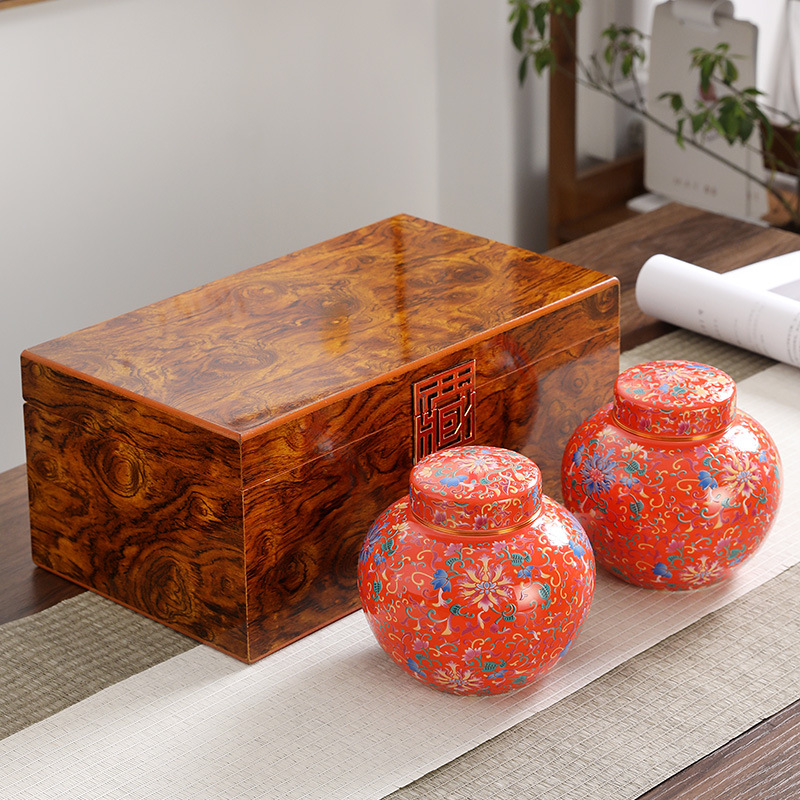 (オレンジレッド、セラミック製スクリュー蓋)、ダブルキャニスター、木箱入り