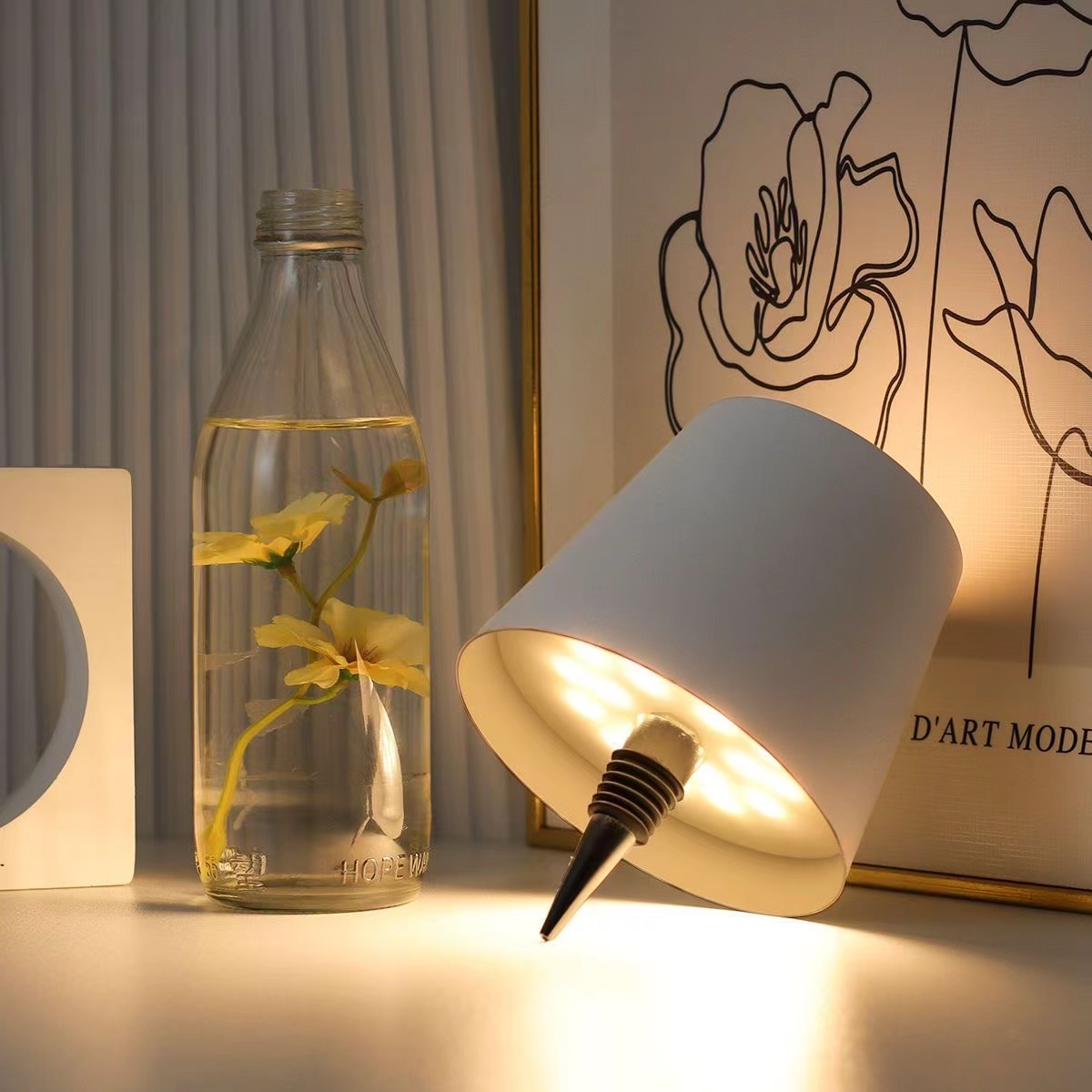 この独創的なワインボトルランプは、使われていなかったワインボトルを個性的な照明アイテムへと変貌させる、巧みなデザインです。レトロなワインボトルにシンプルな黒いランプシェードを組み合わせ、芸術的で落ち着いた雰囲気を醸し出しています。また、3000Kのウォームイエロー、4500Kのニュートラル、6000Kの明るい3色の照明切り替えに対応しています。温かみのある光でリラックスした雰囲気を演出したり、読書に心地よい光でリラックスしたり、クリアな光でオフィスの補助照明として活用したりと、様々なシーンに適応します。古くなったものを再利用するという環境に優しいアイデアを実現するだけでなく、家庭やデスクトップに独特の質感を加え、様々なシーンの照明ニーズに容易に対応します。