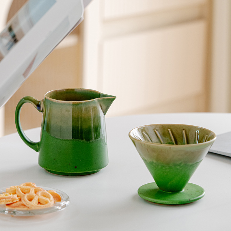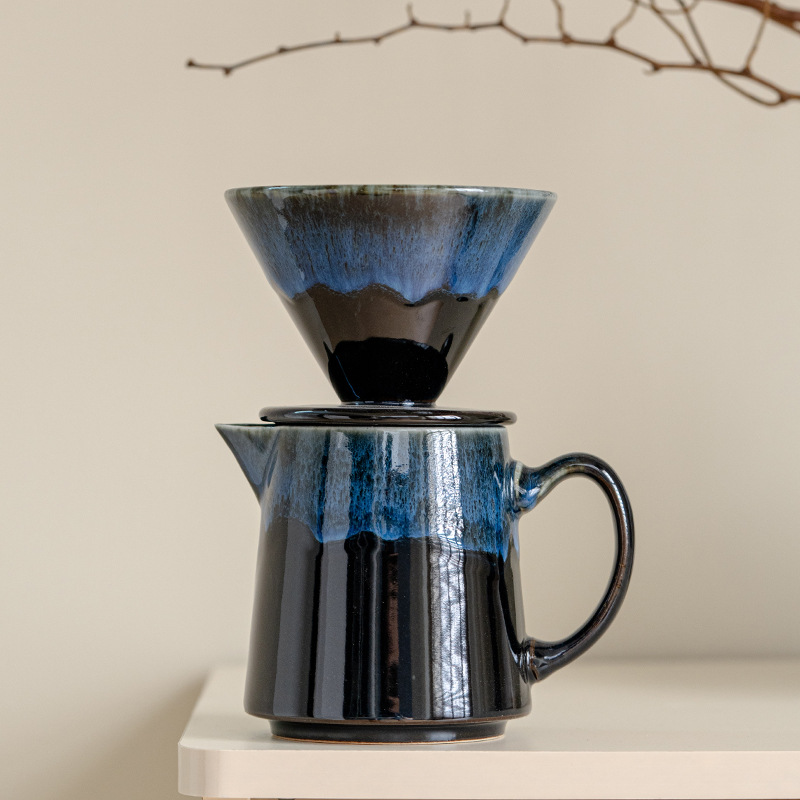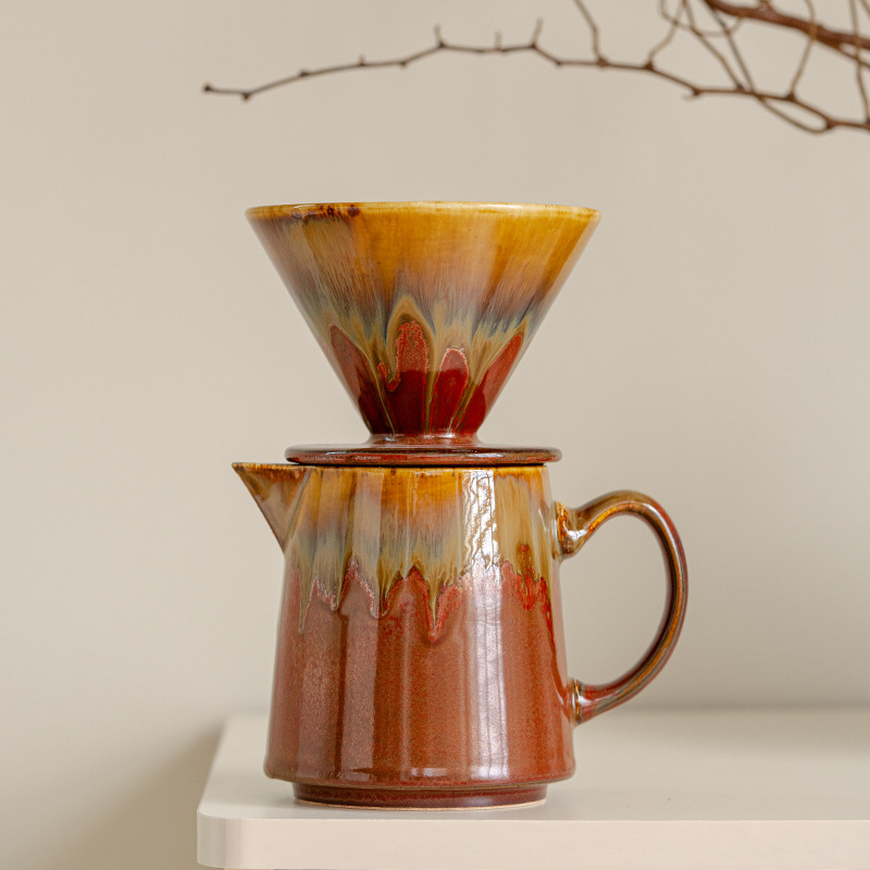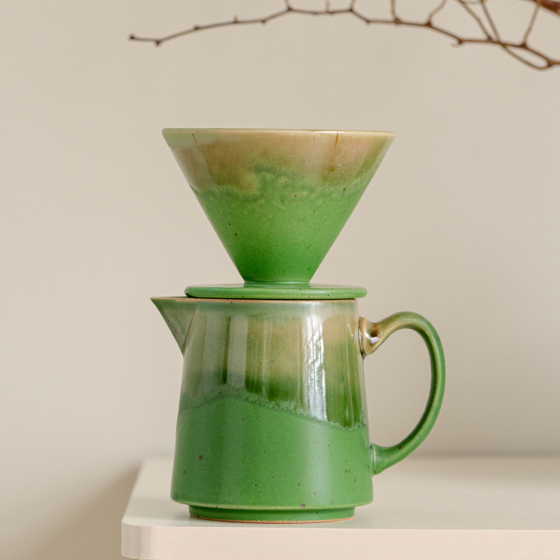 窯焼き釉薬を施したコーヒー用プアオーバーセットには、セラミックフィルターカップとシェアリングポットが含まれています。レトロな窯焼きグラデーション釉薬技法を用い、緑、茶、青の配色は豊かな質感と、手作りならではの独特の風合いを醸し出しています。フィルターカップはコーヒーフィルターペーパーに対応しており、コーヒーの風味を均一に抽出します。シェアリングポットは持ちやすく、簡単に淹れられます。ご家庭のコーヒーコーナーやプアオーバー愛好家の毎日の淹れ方に最適なこのセットは、プアオーバーの儀式をより豊かにする実用的なツールであると同時に、独特の窯焼き釉薬がコーヒーコーナーを彩るアクセントにもなります。コーヒー愛好家自身が使用したり、愛好家への贈り物としても最適な、高品質なアイテムです。