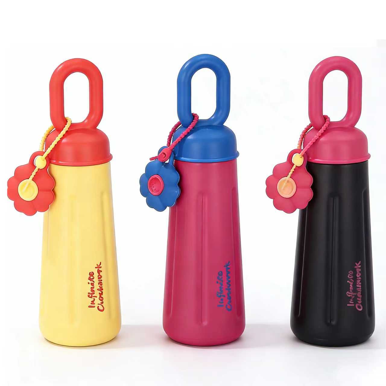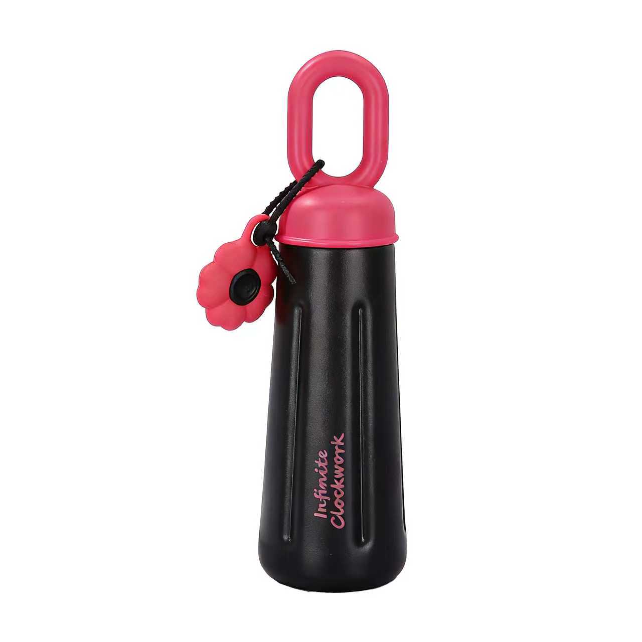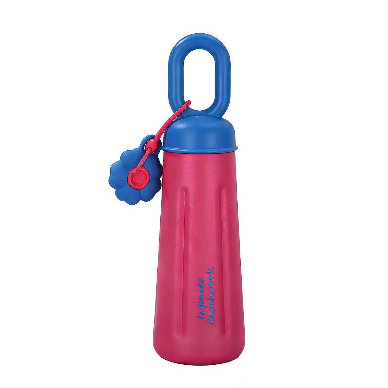 愛らしいカラーブロックの携帯用ウォーターボトルは、外出先での飲み物の持ち運びにぴったりの、目を引くアイテムです。ブラックとレッド、ピンクとブルーのカラーコンビネーションがトレンド感を演出し、リングハンドルはそのまま持ったり、バッグのサイドに掛けて両手を自由にしたりと、様々なシーンで活躍します。フラワーチャームが遊び心のあるディテールを添え、ボトルにあしらわれた文字の装飾がスタイリッシュなデザインをさらに引き立てます。通勤時に温かいお湯を入れたり、アイスドリンクを買ったり、旅行にフルーツティーを持って行ったり。カラフルな外観と洗練されたデザインは、飲み物の持ち運びを美しく、そして便利にしてくれます。