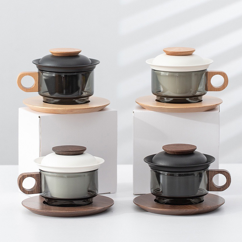 このガラスとセラミックの蓋付きマグカップは、ガラスの本体にセラミックの蓋、木製のつまみ、そしてソーサーを組み合わせたデザインです。質感のミックスがミニマルなスタイルを演出し、黒と白のカラースキームと異なる木目調の組み合わせは、多様な美的嗜好に応えます。蓋は埃を防ぎ、飲み物を保温し、付属のソーサーは火傷を効果的に防ぎます。ご家庭やオフィスでの飲み物など、様々なシーンでお使いいただけます。日常使いはもちろん、オフィスでの飲み物など、様々なシーンで活躍します。普段使いはもちろん、スタイリッシュなデスクトップデコレーションとしても活躍し、美しさと機能性を兼ね備えた逸品です。ご自身用にもギフトにも最適です。