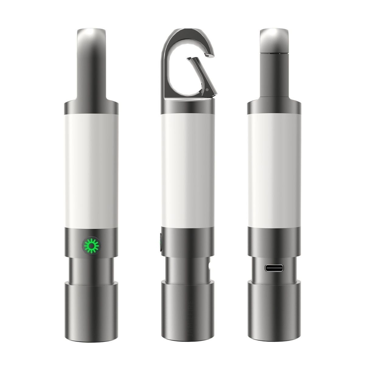 このミニマルなシルバーグレーの円筒形多機能ツールは、日常使いやアウトドアシーンで活躍する、持ち運びやすく実用的なアイテムです。スリムなボディはポケットにすっぽり収まり、付属のフックを使えばバックパックやキーホルダーに掛けて手軽に持ち運べます。さらに、ライト機能を搭載し、USB充電にも対応しているため、バッテリー寿命を延ばすことができ、夜間の非常用照明やアウトドアでの緊急用具としても最適です。