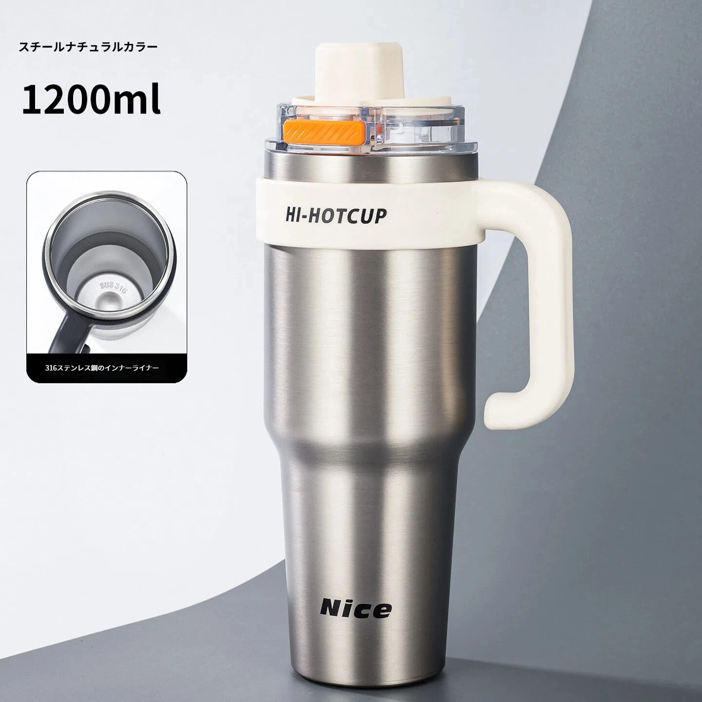 この大容量の携帯用魔法瓶は、保温・保冷機能、快適なハンドル、そして豊富なカラーバリエーションが特徴です。旅行シーンに最適な大容量設計で、いつでもどこでも最適な温度の飲み物をお楽しみいただけます。毎日の通勤やアウトドア旅行に最適な、まさに心温まる一品です。