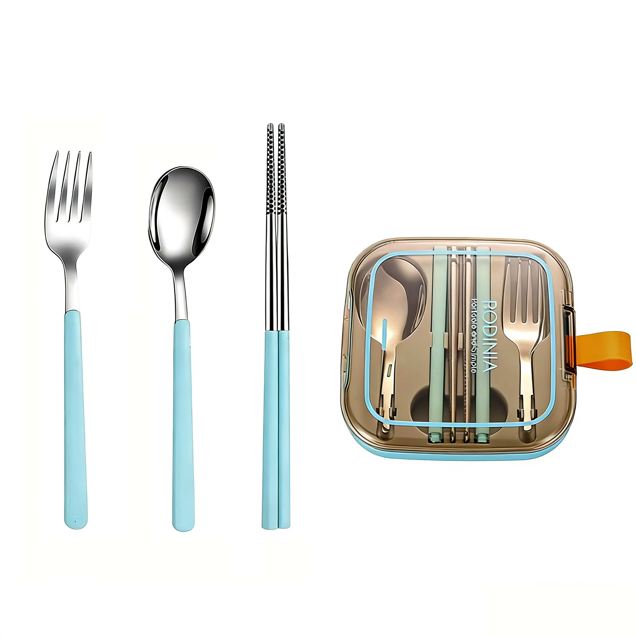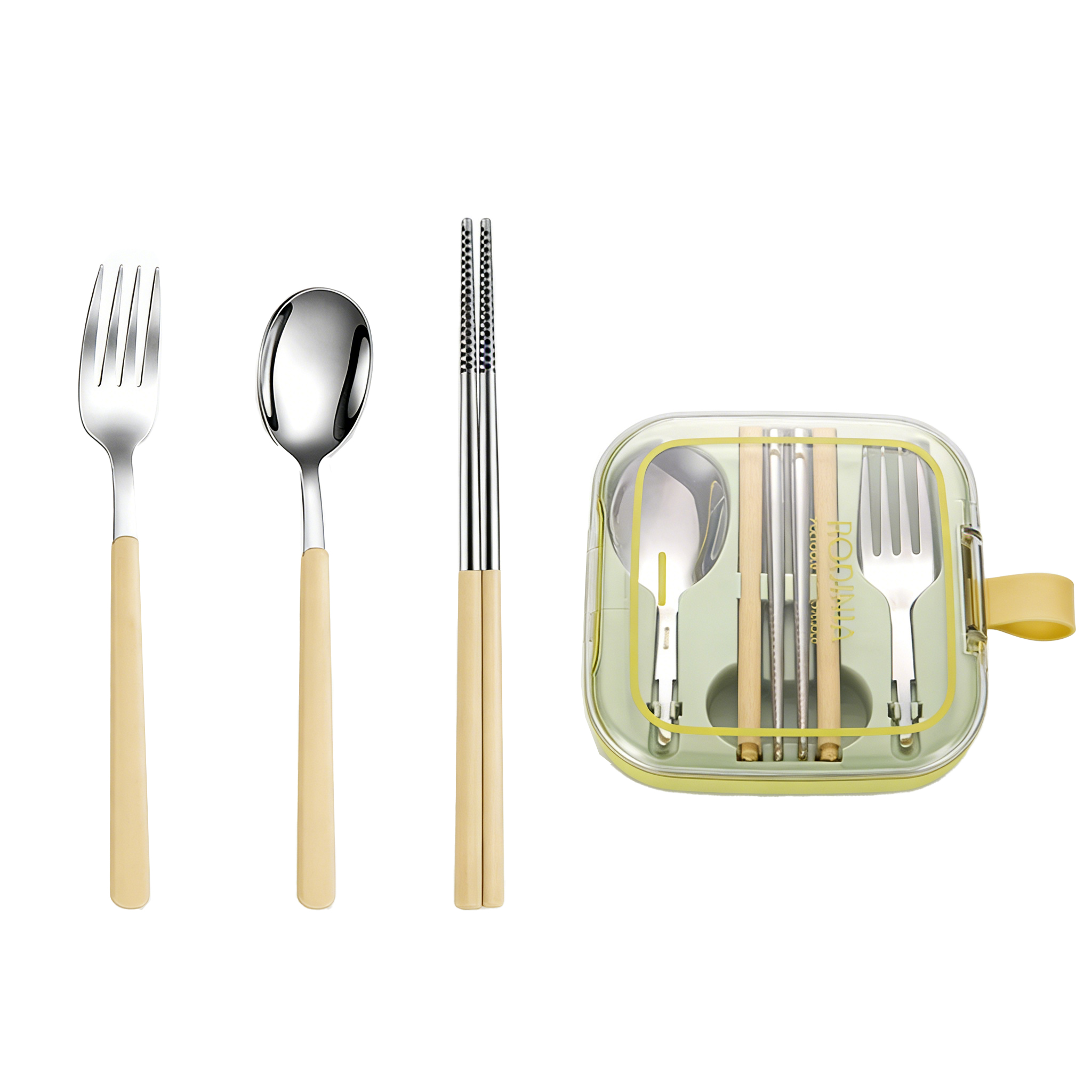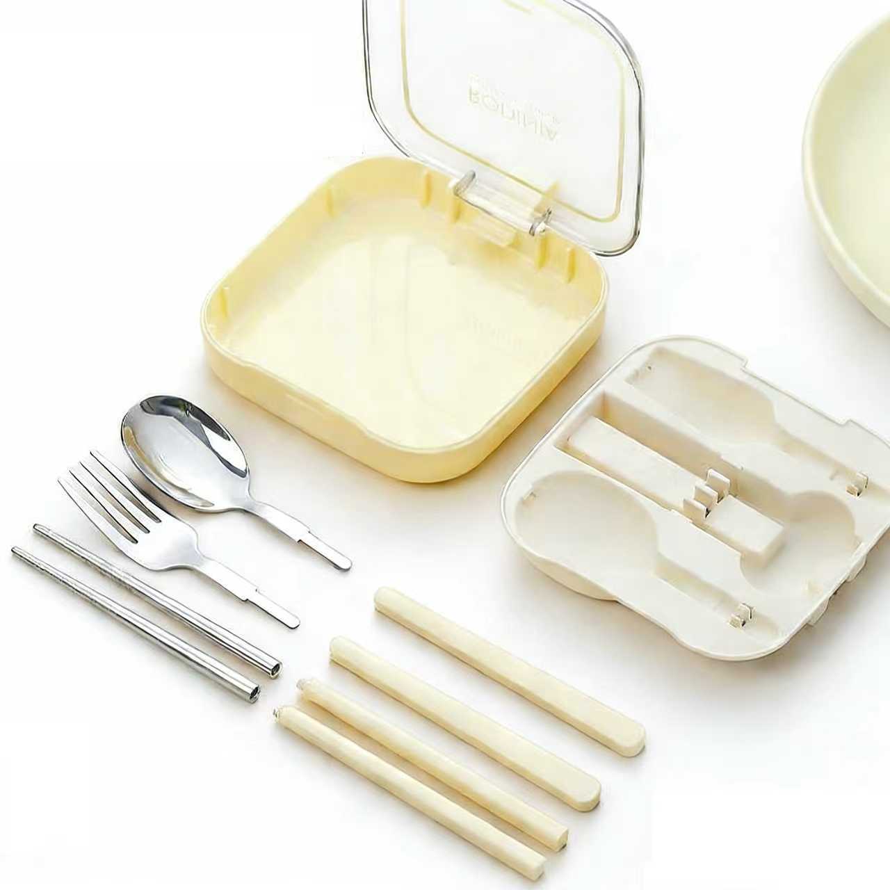 この明るい色のポータブルカトラリーセットは、外食を清潔で快適にする頼れるアイテムです。カトラリーを整理整頓しておけるよう、正確な位置に配置できます。軽量コンパクトなボックスには、箸も付属しています。ランチボックスで通勤したり、ピクニックのポータブルカトラリーとして使ったり、より衛生的な食事のために自分のカトラリーを持参したりと、すっきりとした収納と清潔な見た目で、外食を便利で快適に過ごせます。