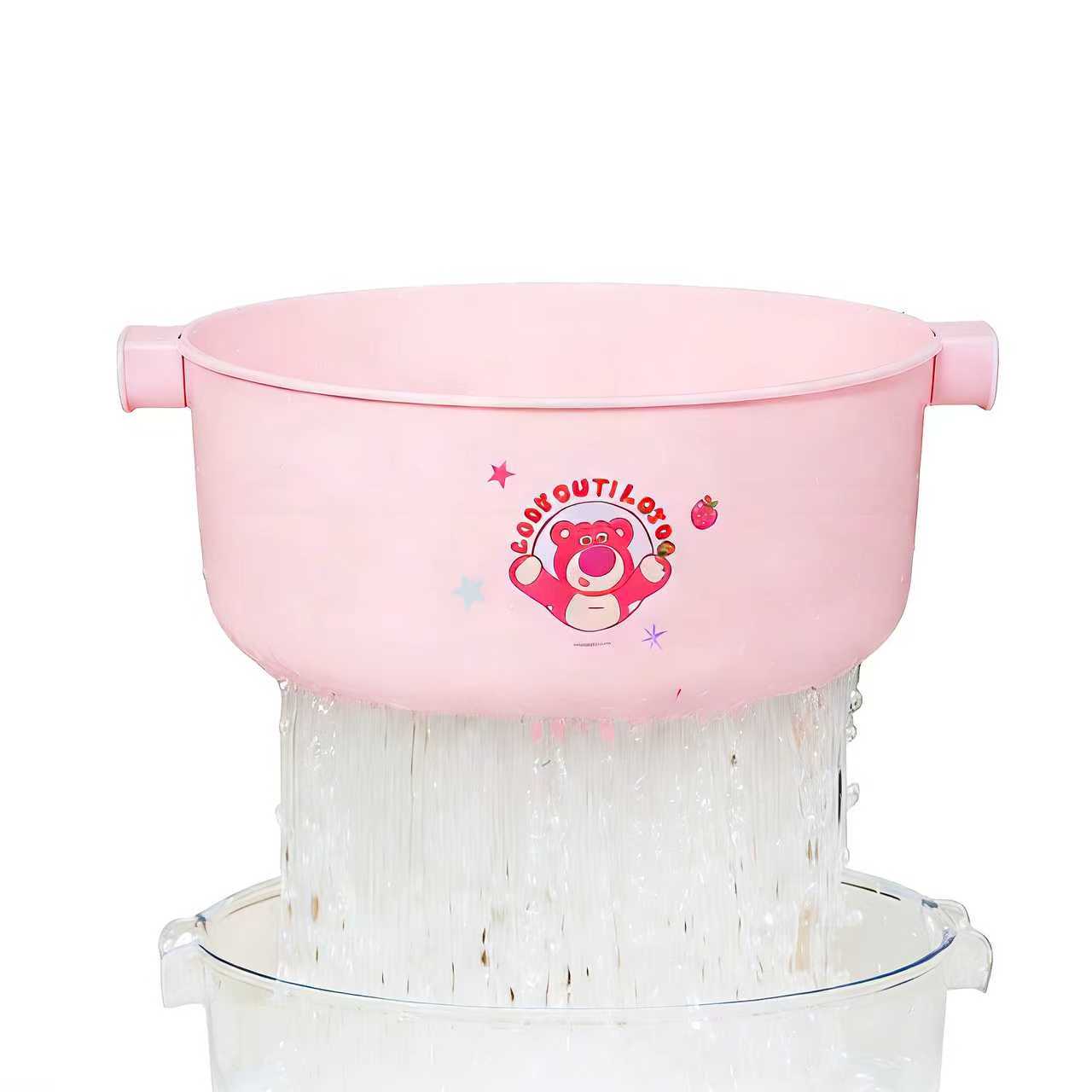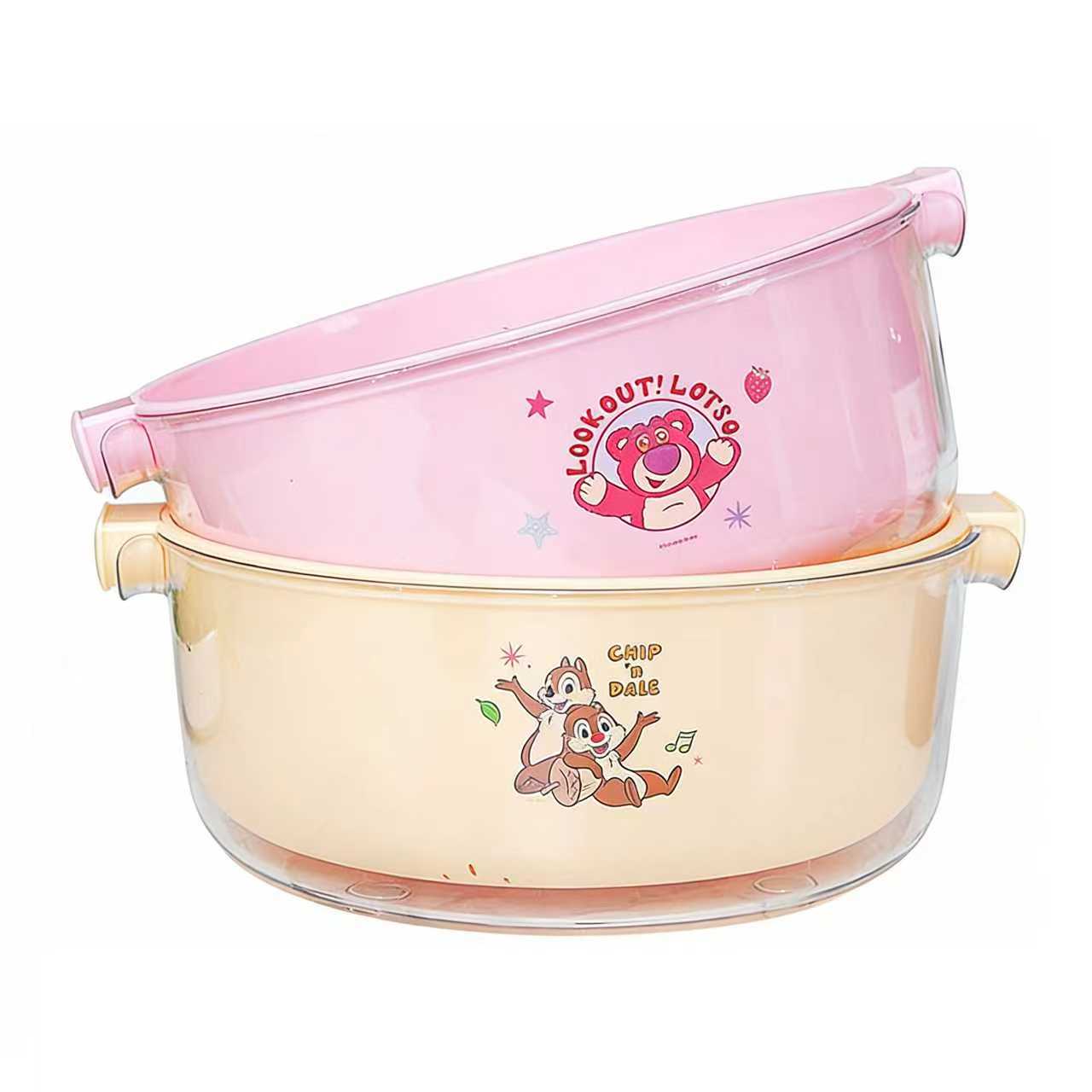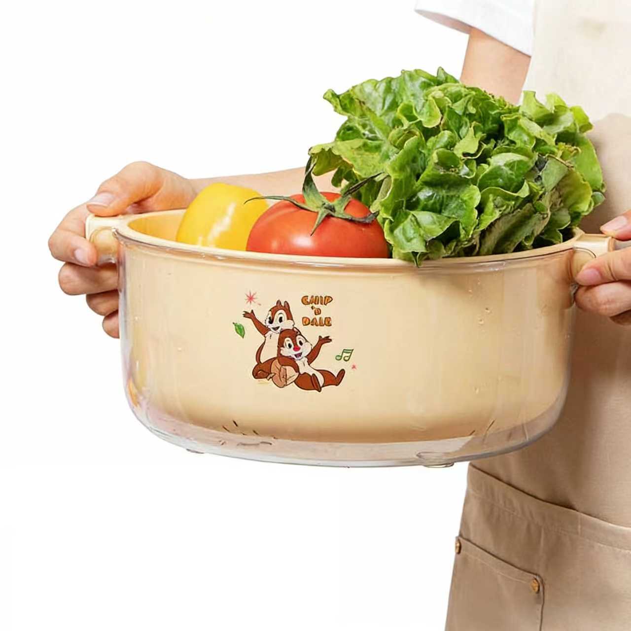 この二重構造の水切りかごは、柔らかなベージュの内側と透明な外側の層が特徴で、遊び心あふれるチップとデールの柄がプリントされています。毎日のキッチンライフに、子供のような楽しさを添えてくれます。二重構造なので、水切りと水受けの両方が可能で、野菜や果物を素早く乾燥させることができます。両側に便利な持ち手が付いているので持ち運びも簡単で、使用後は重ねて収納できるため省スペースです。調理効率を高める実用的なアイテムであるだけでなく、ディズニーファンにとっては素敵なコレクターズアイテムにもなり、いつものキッチンタイムをより癒しの時間に変えてくれます。