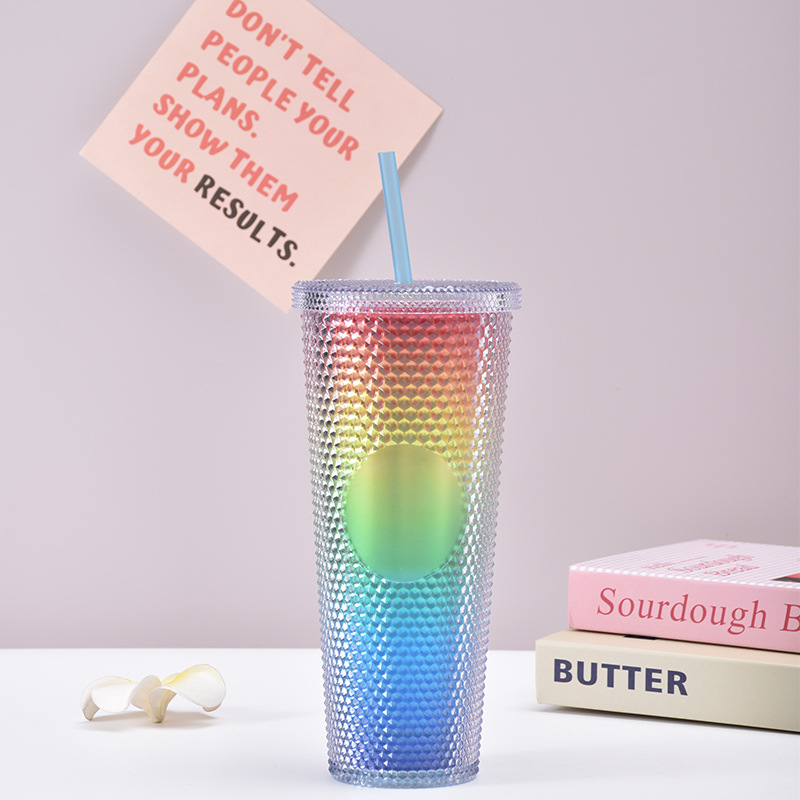 カラフルなメッシュテクスチャのストローカップは、レインボー、ブルー、ピンク、ブラックなど、10色以上のトレンドカラーを取り揃えています。カップ本体のメッシュデザインは、質感と滑り止め機能を兼ね備えています。同色のストローと組み合わせることで、スタイリッシュさと実用性を兼ね備えています。アイスドリンク、コーヒー、ミルクティーなど、どんな飲み物にもトレンド感をプラスできます。毎日のお出かけにも、ご自宅でのくつろぎにも、ファッショナブルな一品です。