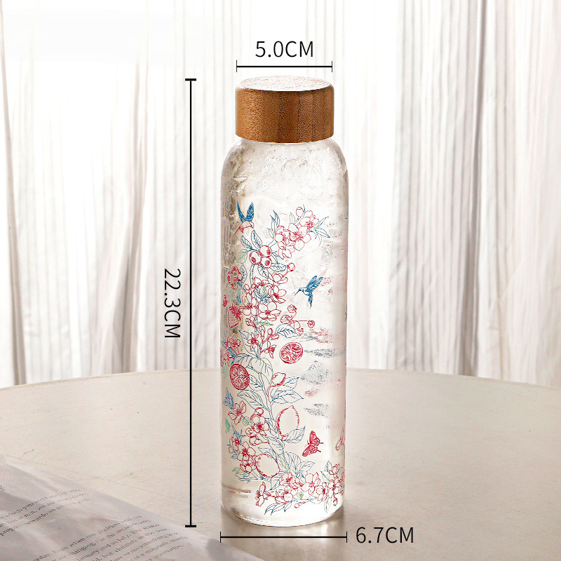温度感応で色が変わるグラスは、容量550ml。繊細な花鳥模様と竹の蓋で装飾され、上品な雰囲気を醸し出しています。独自の温度感応色変化技術により、温度変化によってダイナミックな視覚変化を演出します。快適なサイズとグリップ感は、毎日の飲み物に実用的でありながら、個性的なデザインはインテリアとしても最適で、生活に創造性と美しさを添えます。美しさと遊び心を兼ね備えた、トレンド感あふれるアイテムです。