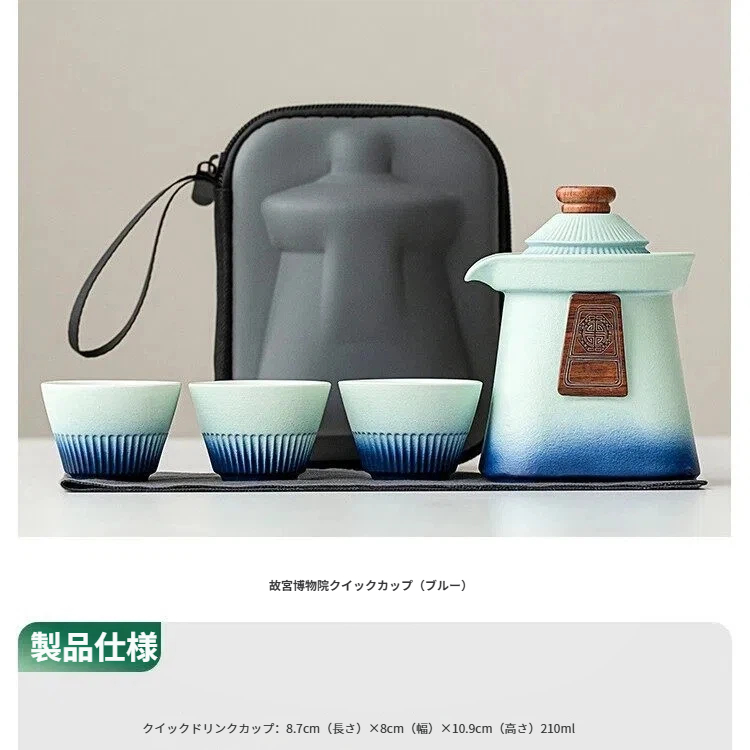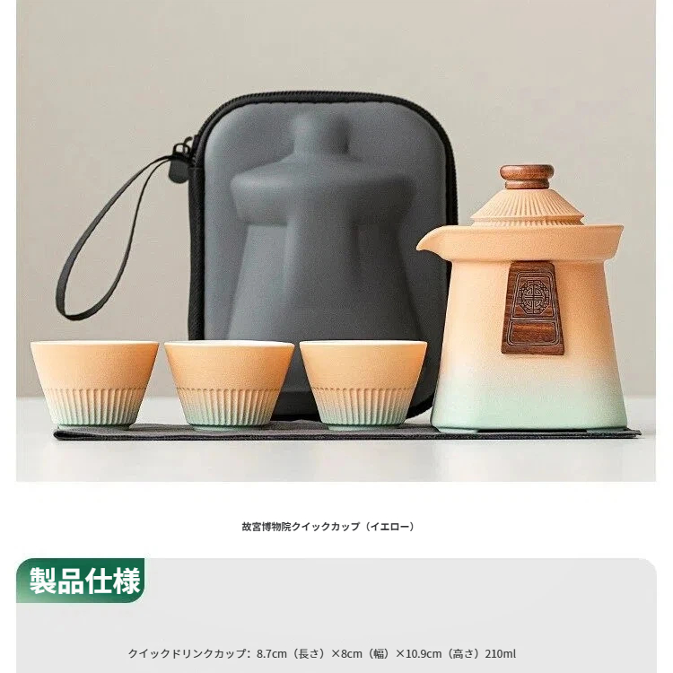 このグラデーション釉の携帯用茶器セットは、オレンジとグリーンの優しいグラデーションを基調としています。蓋碗には茶漉しが内蔵されており、お茶を濾す手間が省けます。木製の蓋とヴィンテージの装飾板が、絶妙な質感を醸し出しています。3つの茶碗もグラデーションカラーで統一され、爽やかで上品な印象を与えます。セット全体を収納できる特注の携帯用収納バッグ(吊り紐付き)は、キャンプ、通勤、オフィスでの休憩時間などにお茶を飲むのに最適です。茶道の繊細な儀式的な側面を満たしながら、実用性とスタイル、そして携帯性と美しいデザインを兼ね備えています。お茶を楽しむための個人的な贈り物としても、上質な茶器セットです。