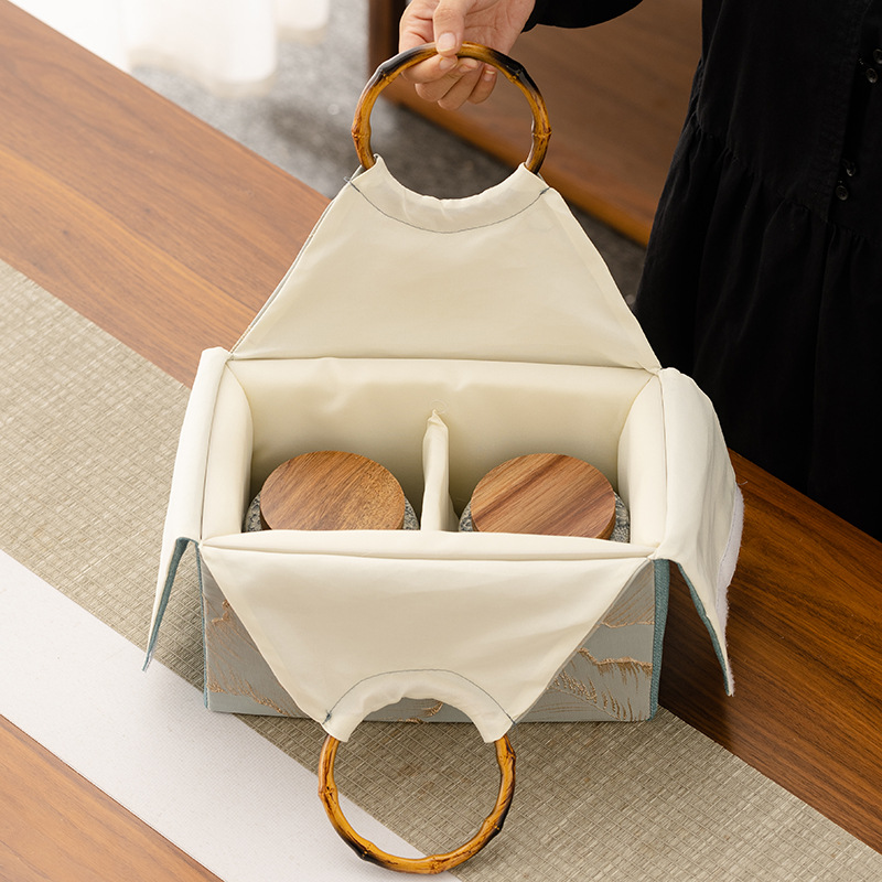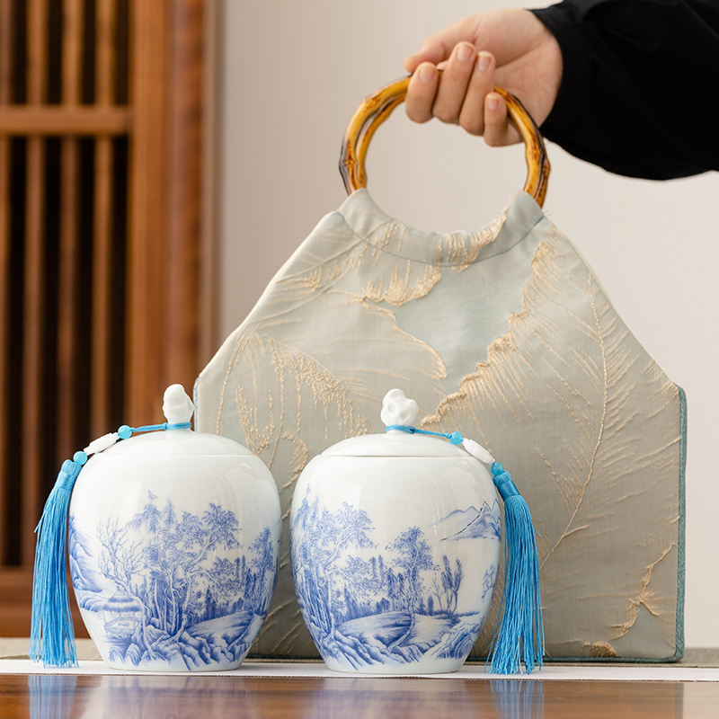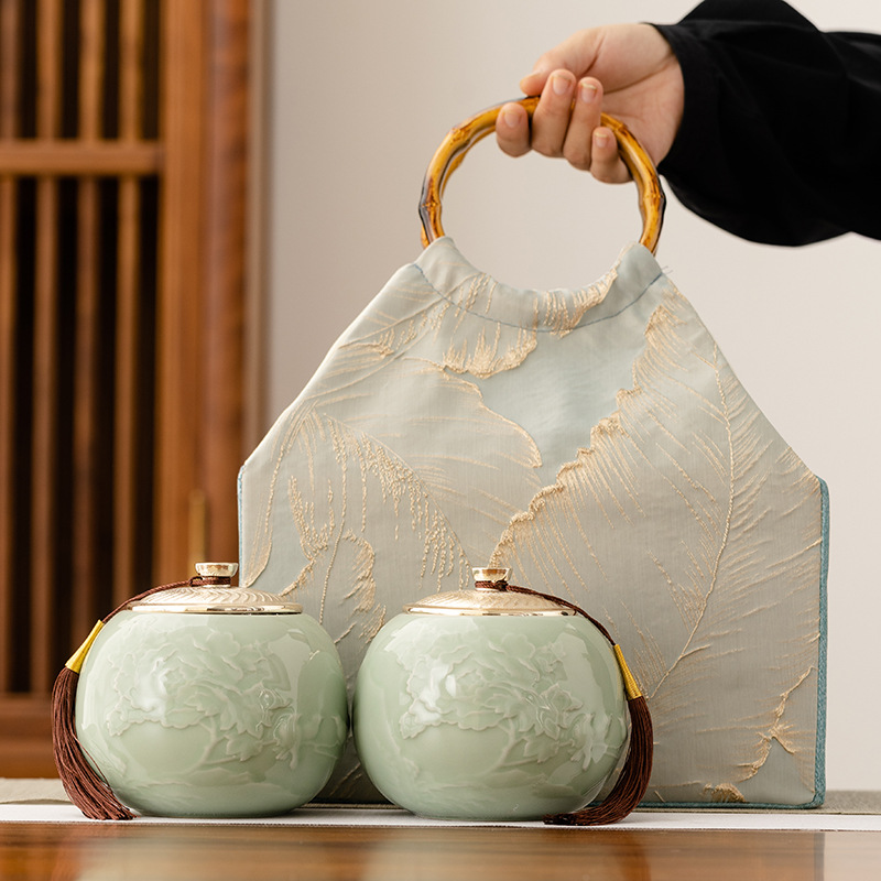 伝統の職人技と洗練されたデザインが融合したこのティーギフトセットは、あなたの想いを届ける最高の器です。厳選された生地に立体的な葉の刺繍を施した、風合いのある竹の持ち手付きティーバッグは、開け閉めするたびに東洋の繊細な美しさを堪能できます。中には、上品で洗練されたヴィンテージ柄の青白磁のティーキャディーが2つ入っています。クルミ材の蓋は、香りを閉じ込めるだけでなく、自然な洗練さも演出します。上質なお茶をご自身で楽しむためだけでなく、ご家族やご友人への贈り物としても、このティーセットは、ティーキャディーを茶の香りと心からの想いを包み込む器として、お茶を開けるたびに、上質で感動的な詩情を味わうひとときをお届けします。