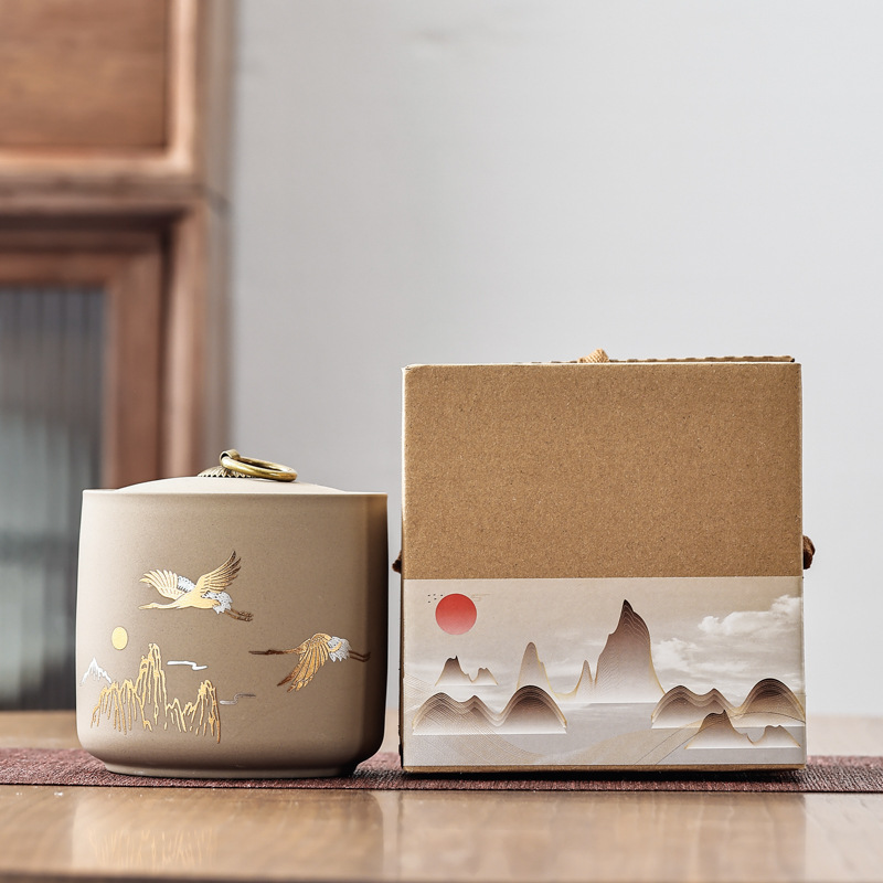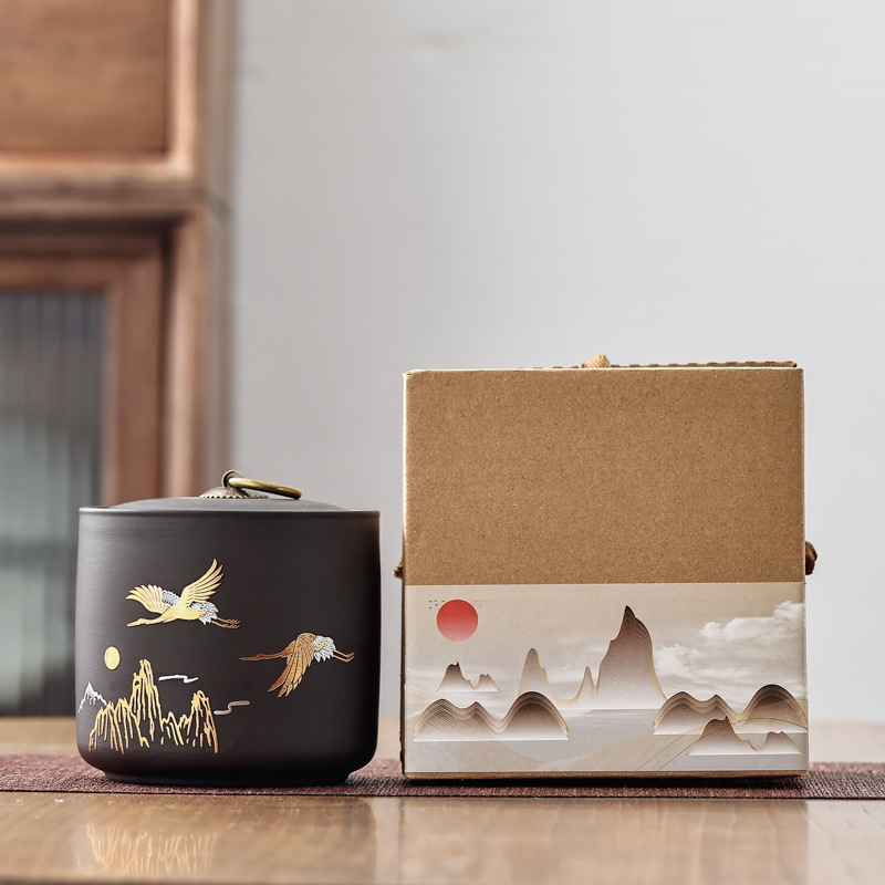 この茶筒ギフトセットは、中国の優雅さを漂わせています。陶器の瓶には金箔押しの鯉と波模様が施され、銅製の留め具で蓋をしっかりと閉じてお茶の香りを閉じ込めます。山水と赤い太陽をモチーフにした高級感のあるギフトボックスも付属しています。実用性と中国風の美しさを兼ね備え、お茶を保管するだけでなく、お茶好きの方への贈り物としても最適です。お茶を楽しむひとときに、優雅な儀式の雰囲気を添えます。