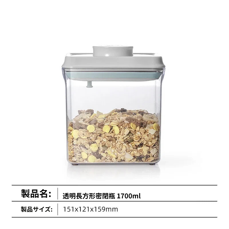 仕様:長方形 AS 1700ml 色:長方形 透明グレー 重量:約350g 材質:AS 形状:長方形 寸法:151×121×159mm