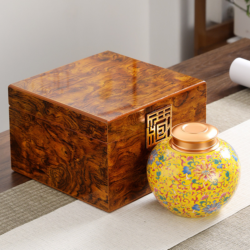 カラー:ホーロー塗装丸瓶(インペリアルイエロー、金属製スクリューキャップ)、木箱入り1個入り
