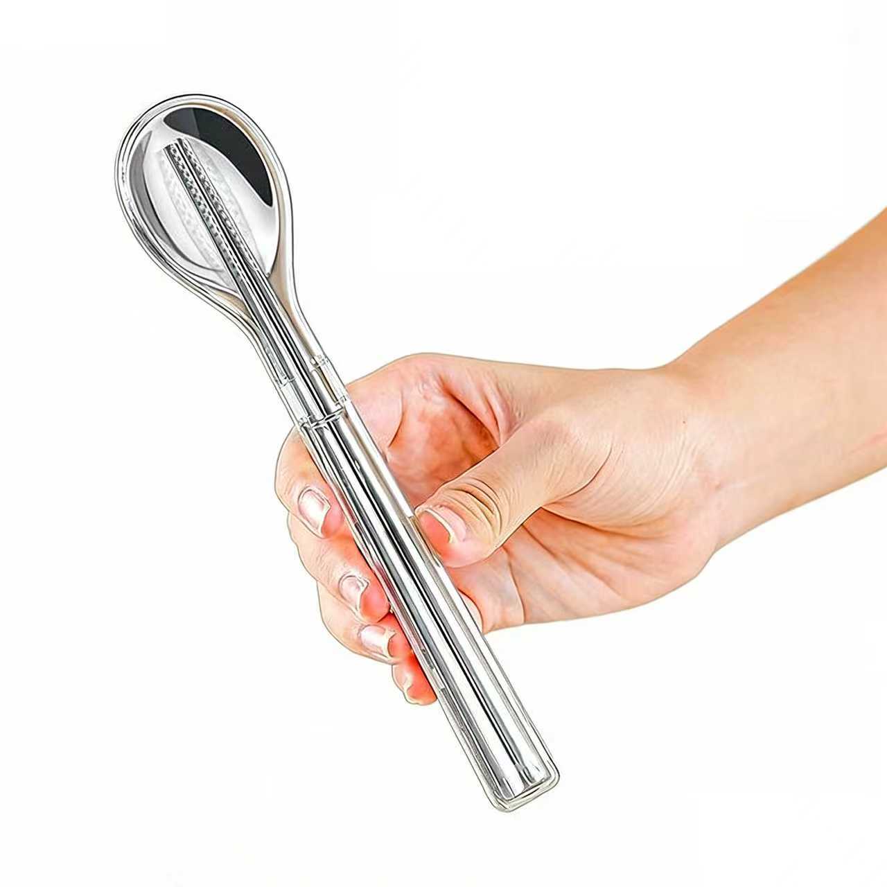 このステンレス製のポータブルカトラリーセットは、衛生的で実用的な外食の味方です。箸の先端には滑り止め加工が施され、食材をしっかりと掴むことができます。スプーンと箸はどちらも耐久性があり、お手入れも簡単なステンレス製です。付属のポータブルケースはセット全体をすっきりと収納でき、軽量で省スペースなので、バッグにも簡単に収まります。職場にランチを持っていく時も、ピクニックのポータブルカトラリーとして使う時も、より衛生的な食事のために自分のカトラリーを持参する時も、実用的なデザインと持ち運びやすさで、外食をより安心して楽しめます。