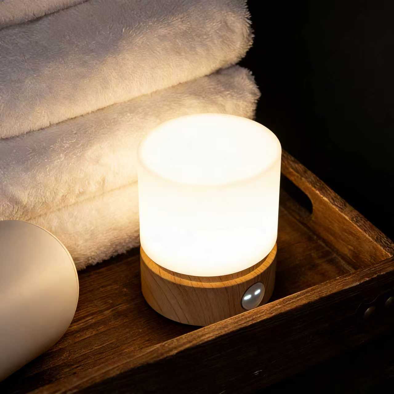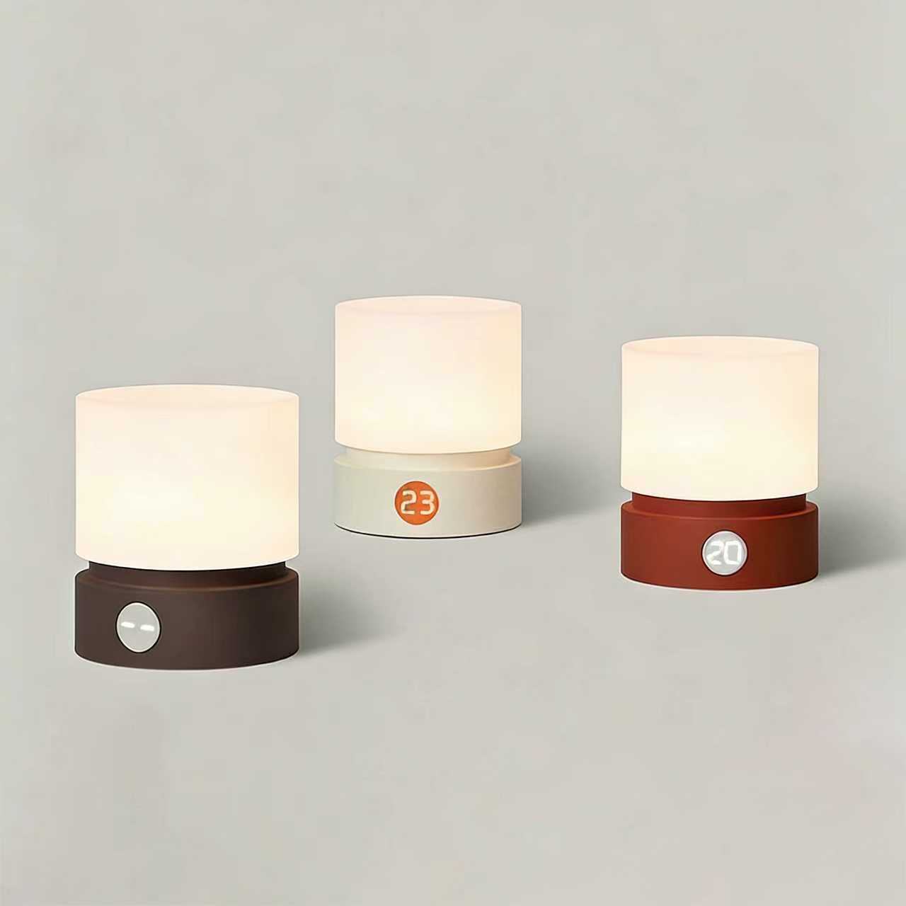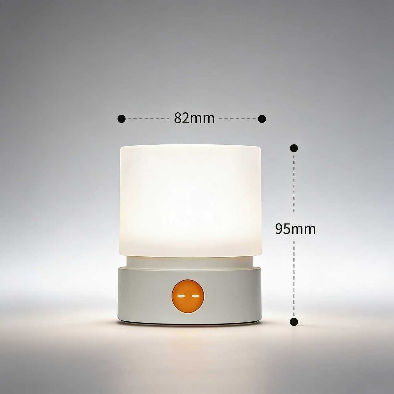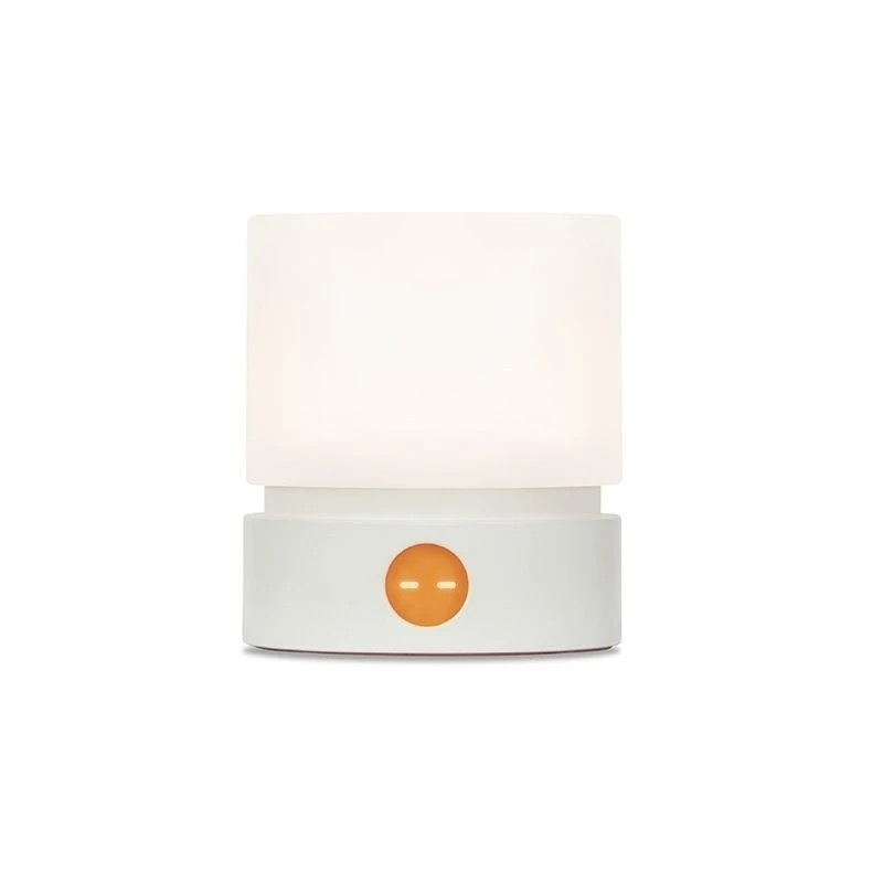 ミニマルで愛らしいこのナイトライトは、デスクやベッドサイドテーブルに心地よく置ける照明です。清潔感のあるオールホワイトのデザインに、ベースにオレンジ色の絵文字ボタンをあしらい、シンプルな中に遊び心のある魅力を添えています。ディフューザーから発せられる柔らかな光は、まぶしさを感じさせず、ボタンを押すだけで明るさを調整できるので、夜中の目覚めや就寝前の読書など、様々なシーンに最適です。コンパクトなサイズで省スペース、そして光源としても活躍します。寝室のナイトライト、デスクの間接照明、ミニマルな美学を好む友人へのちょっとした贈り物など、どんなシーンでも活躍します。すっきりとしたデザインと実用的な機能が、毎日の暮らしをより心地よく彩ります。